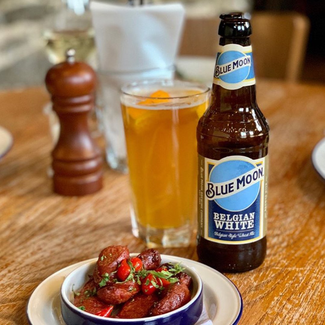 Blue moon belgian white ale pairs well with many meals including seafood, salad, marinated chicken and grilled shrimp.